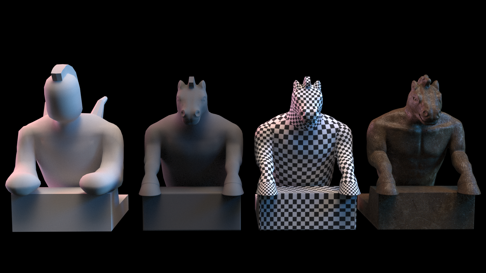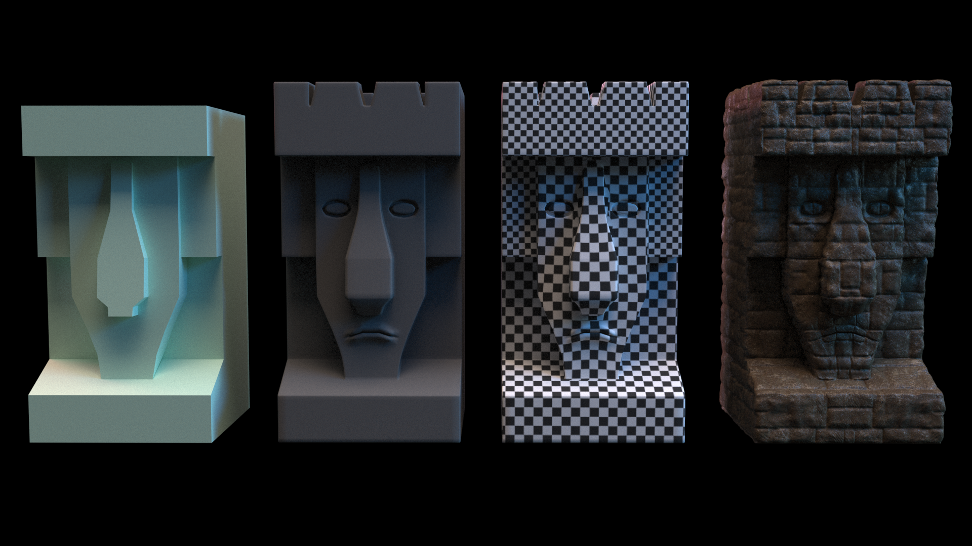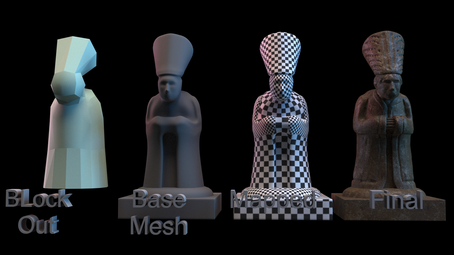 CGI imagery for describing the creation workflow of an entire scene with polygonal tools and digital scultping