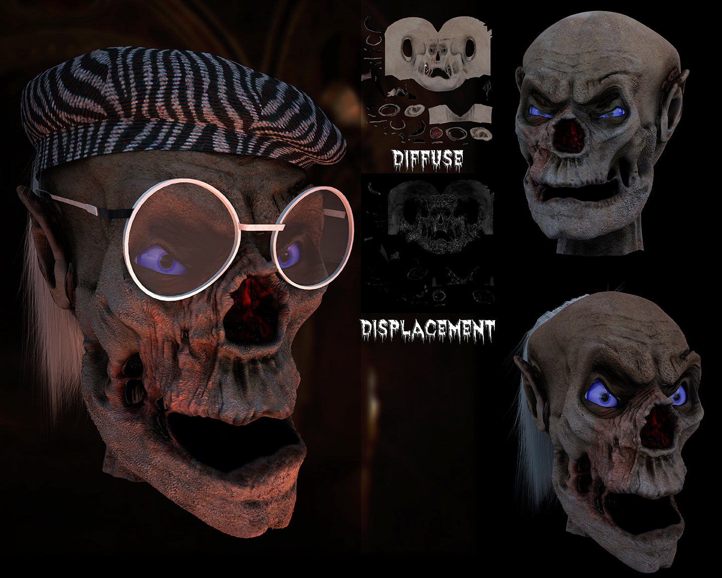 Playing around with the diplacement maps to more organic shapes in parts like skin and garments. The results are not bad but the render times are quite big.