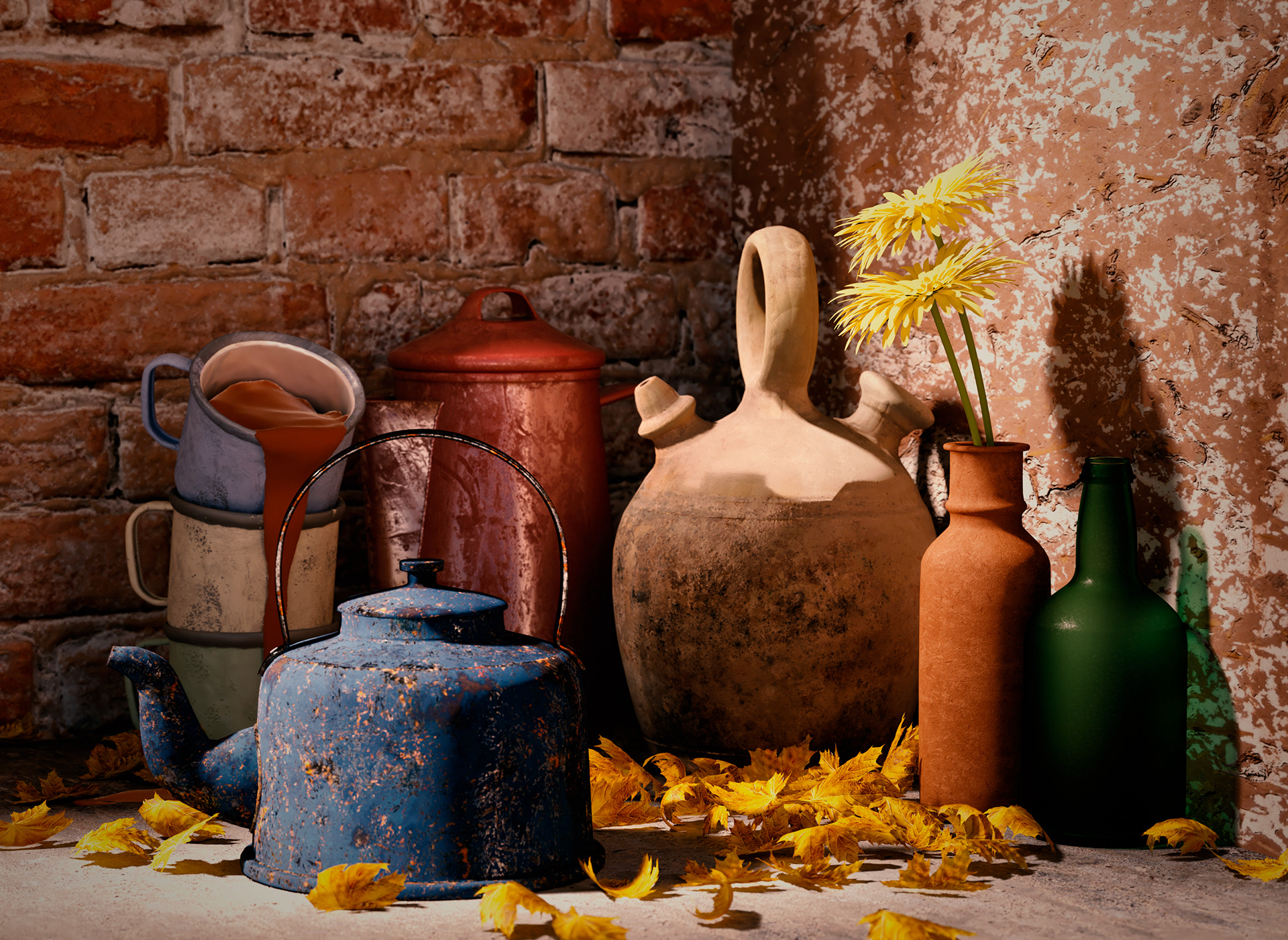 Back to the basics with this one beacuse there is nothing better than a still life with a few objects for improving material skills. Also tested some LUT´s that come for accentuating the contrasts an colors.